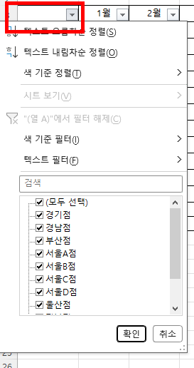 표제목에 필터버튼이 생겼습니다.