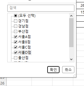 거래점의 필터버튼을 클릭하면 지점명이 나열됩니다.