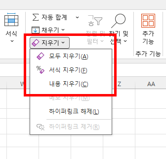 메뉴의 오른쪽에 '지우기' 메뉴가 있습니다.