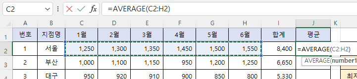 AVERAGE함수식이 표시되었습니다. 엔터를 칩니다.
